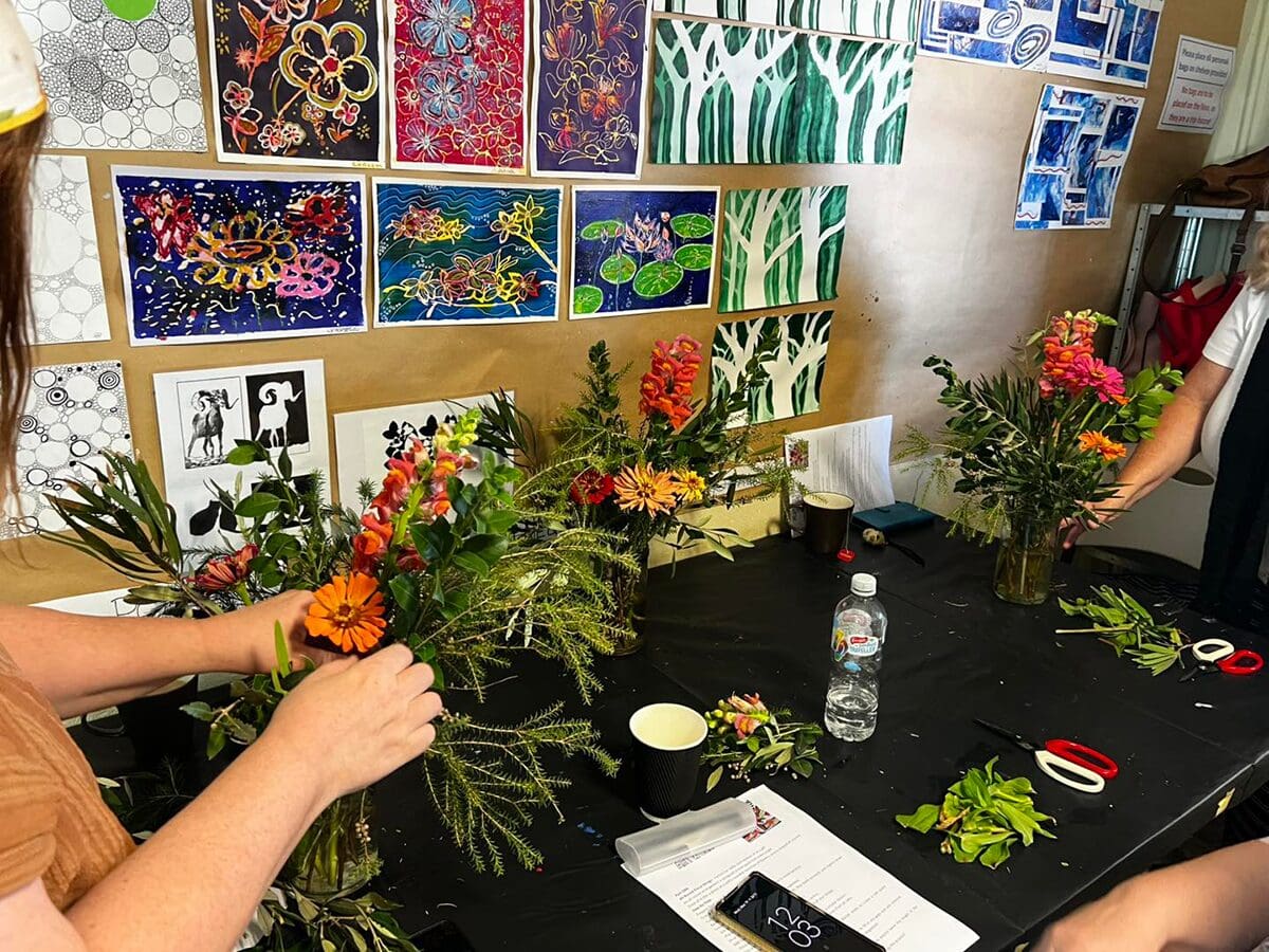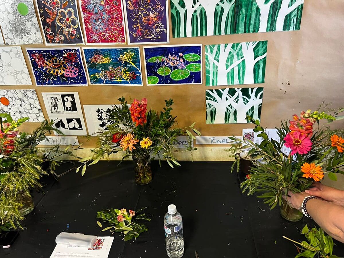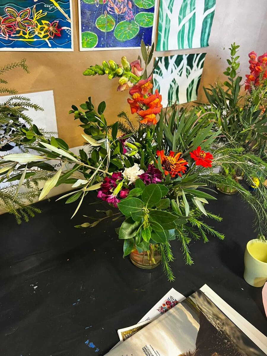 Drawing inspo from their own arrangements, participants created A4 mixed media artworks—choosing to interpret their flowers in either a realistic or abstract way using collage, colour, and texture. This was super fun to facilitate!