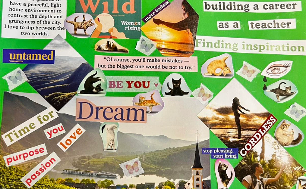 Create a visual art book where you will learn a variety of art techniques such as collage, mixed media, hand lettering, Geli Printing & more!