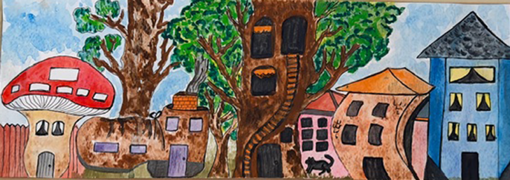 Studio Blog The brief was ‘cityscapes/buildings’The medium was collage, watercolour and pen workThese pages are absolutely wonderful, bouncing with colour and full of imagination. Top