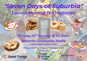 Studio Blog A morning tea will be held on Monday 20th October to celebrate the start of “GET ONLINE WEEK 2025 – Seven Days of