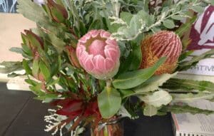 Studio Blog Our final week of floristry was such a beautiful experience! We created stunning native flower arrangements featuring banksia, protea, leucadendron, acacia, and grevillea