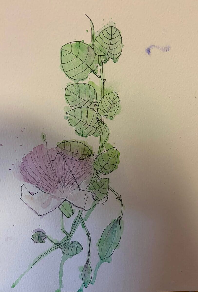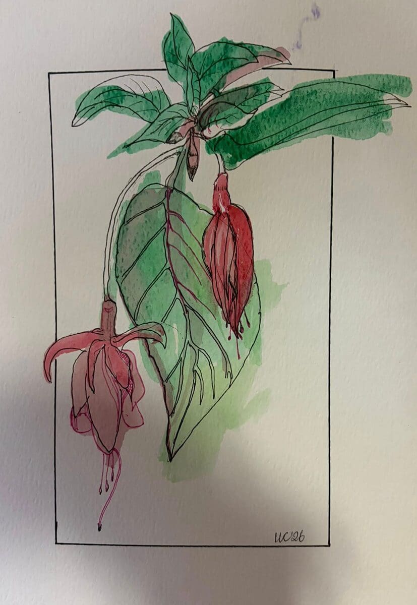 Today the watercolour class experimented with the pen and wash technique to create the beautiful botanical pieces. Completely by accident we all used a similar colour palette using botanicals from home as our references.